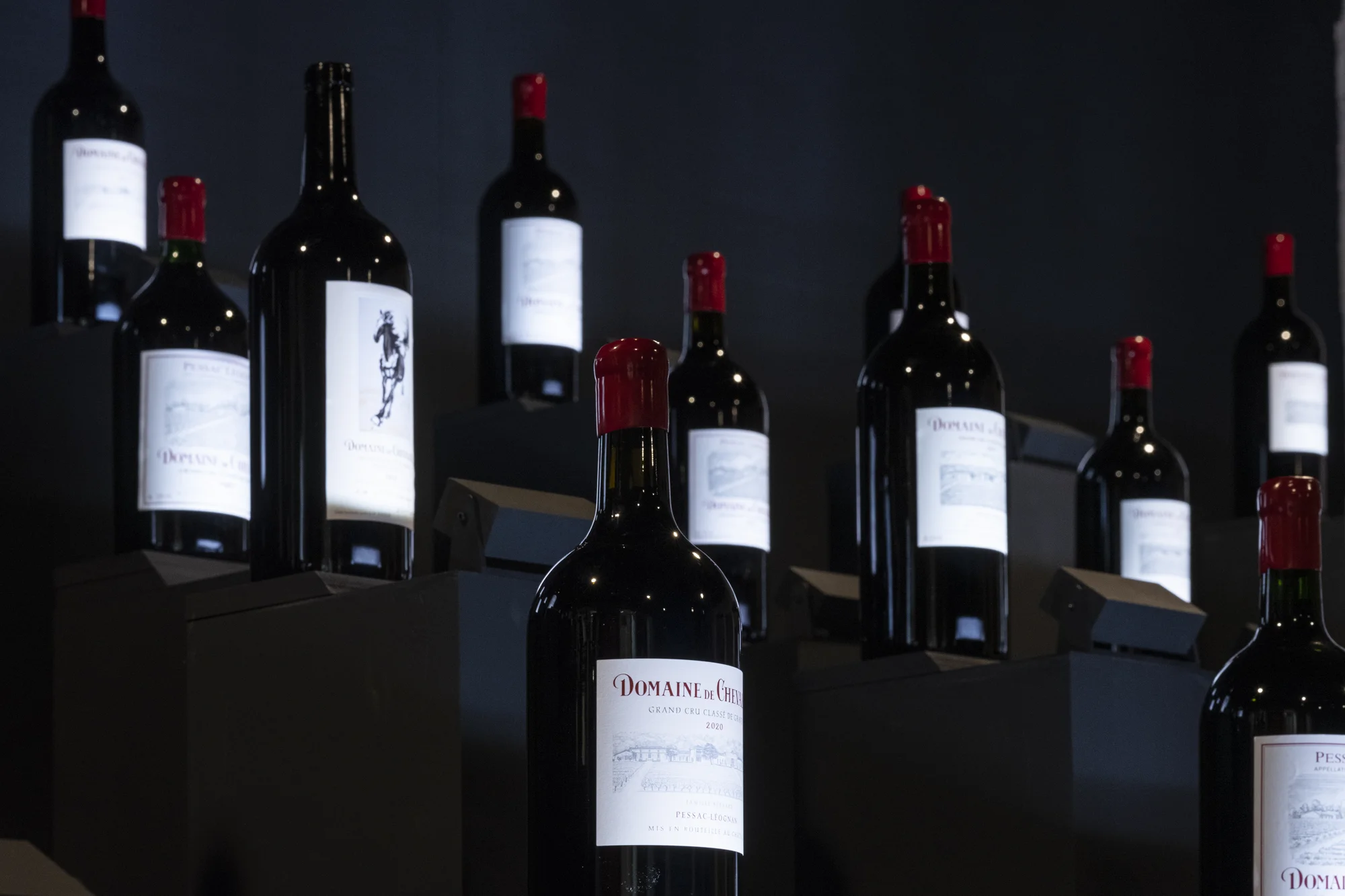 De concert avec Nicolas Husson et le Domaine, FYPART a conçu les équipements, créé des éclairages dynamiques sur mesure, l’ensemble étant au service d’une technologie numérique dédiée visant à faire scintiller les étiquettes au son de la mélodie de Louis Armstrong, signature sonore du Domaine de Chevalier.